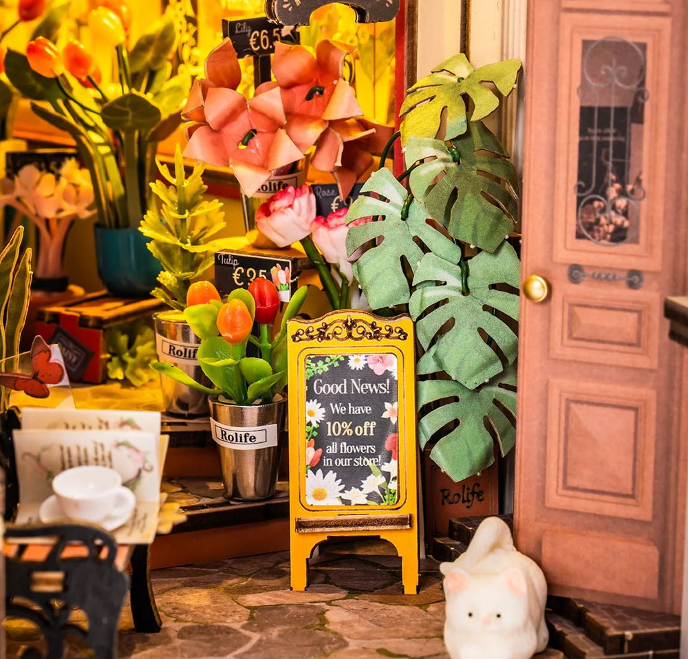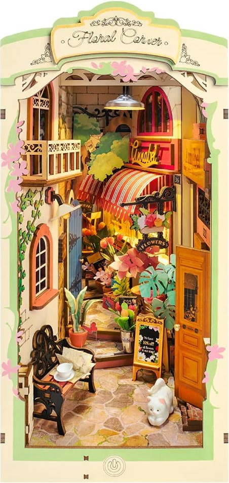 Zestaw umożliwiający złożenie miniaturowej piekarni z oświetleniem LED. Do budowy modelu wykorzystano między innymi drewno, papier, tkaniny, drut, tworzywo sztuczne oraz różne elementy dekoracyjne takie jak: kolorowe ozdoby, cekiny, koraliki, sztuczne kwiaty oraz wiele innych materiałów. Dodatkowego uroku nadaje całości oświetlenie LED, dzięki któremu pracownia może pełnić rolę nastrojowej dekoracji lub lampki nocnej. Opakowanie oprócz czytelnej, obrazkowej instrukcji zawiera także baterie, pędzelek, farby akrylowe, przezroczysty, bezwonny klej oraz pęsetę ułatwiającą montaż małych elementów. Budowa tego modelu pomoże rozwinąć zdolności manualne i przyniesie dużo satysfakcji.