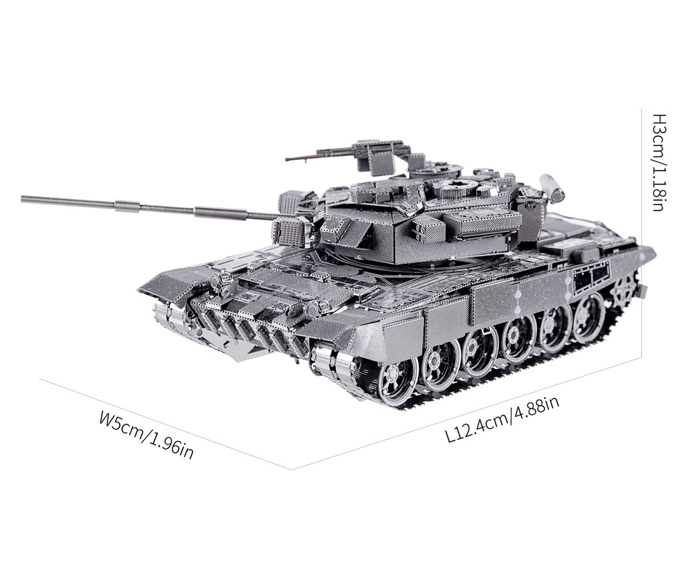 The T-90A is a Russian basic tank, equipped with a number of advanced systems, including explosive-responsive armor, thermal imaging sights and jamming equipment. The T-90A tank is equipped with an improved turret of the T-72BAt tank and uses the LA45T fire control system and the 2A46M-1 125 mm smoothbore cannon. Piececool sheet model contains 150 stainless steel parts in 2 sheets, which make up a highly detailed replica of the T-90a.
