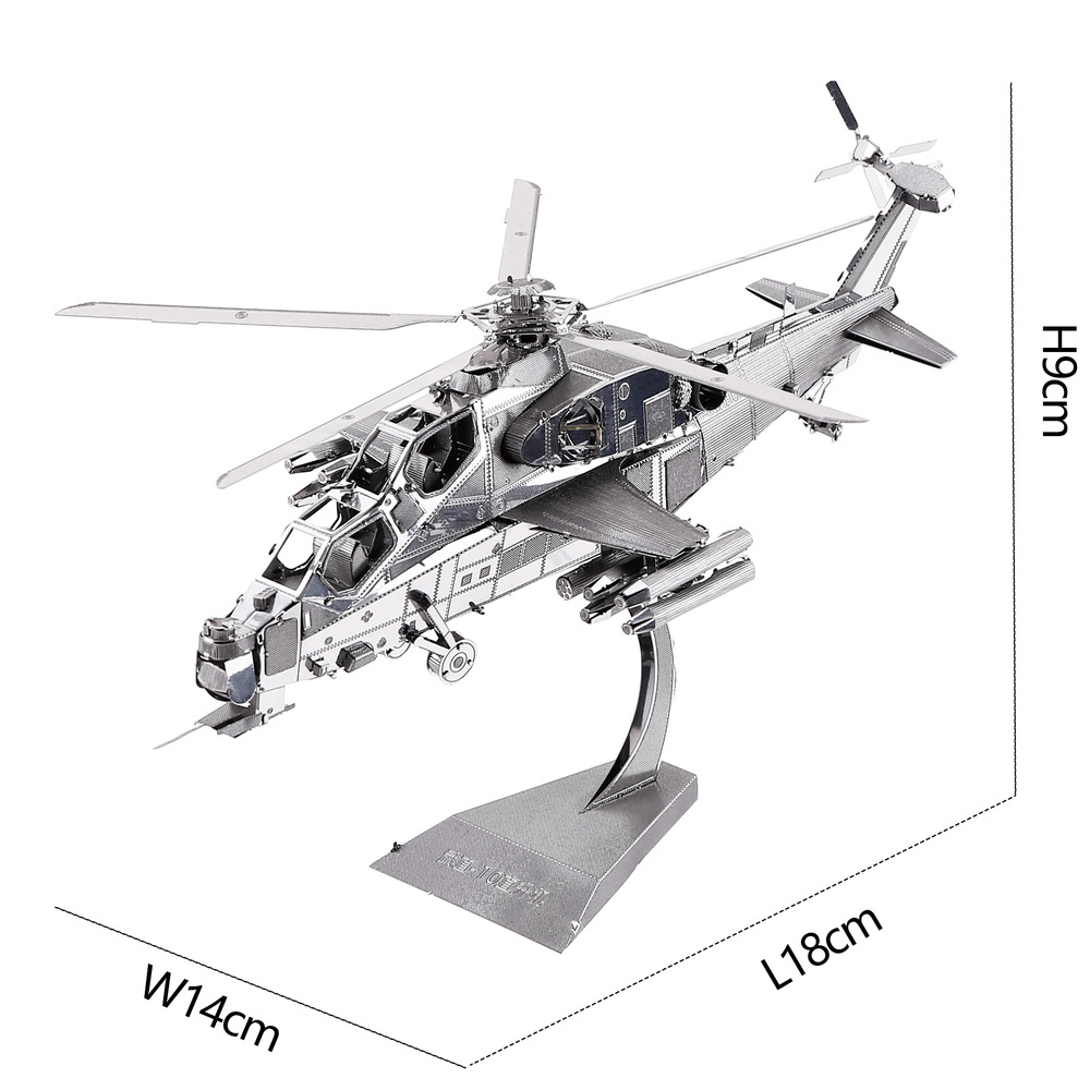 Podobnie jak wszystkie modele piececool, ten zestaw helikoptera jest pełen szczegółów, aby odtworzyć pełnowymiarową maszynę. Zestaw zawiera 150 części ze stali nierdzewnej, w tym stojak wystawowy oraz pełne ilustrowane instrukcje.